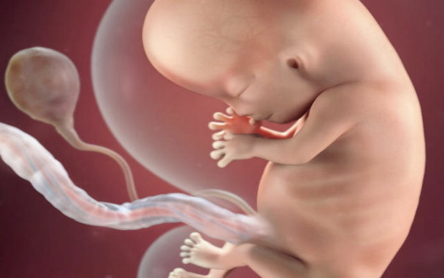 Eller ve ayaklar öne doğru birbirine yaklaşır. Diz ve dirseklerde bükülme hareketleri olur. Kollar ve bacaklarda olduğu gibi vücutta birçok kas, tendonları aracılığıyla kemiklere bağlanmış olup kas hareketleri başlamıştır. Bebeğinizin insan görünümü daha belirgindir. Ancak baş hala büyük olup, yuvarlaklaşmıştır ve embriyonun yarısını kaplar. Beyin gelişimi oldukça hızlıdır. Vücudun önemli kontrol merkezlerinden olan hipotalamus gibi birçok beyin yapısı şekillenmiştir. Kafa derisinde damar ağları gözlenir.